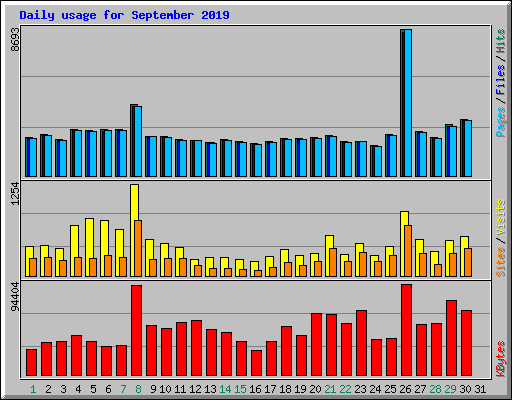 | Day | Hits | Files | Pages | Visits | Sites | KBytes | ||||||
